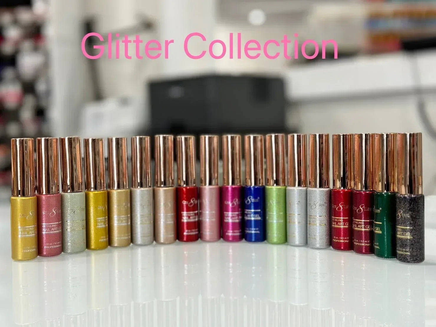 Cre8tion Detailing Nail Art Gel - Glitter Collection - 18 colors 0.33oz (gel line)