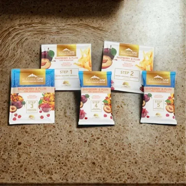 La Palm Volcano Spa Pedicure 6-Step - Fire Sensation: Raspberry & Plum Step 1: Detox Volcano CrystalsStart your spa pedicure... Read more